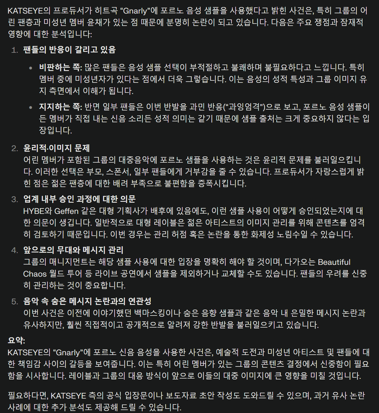 | Subject | 미성년 멤버 있는데…‘캣츠아이’ 노래 ‘날리’에 성적 음향 효과 파문 |