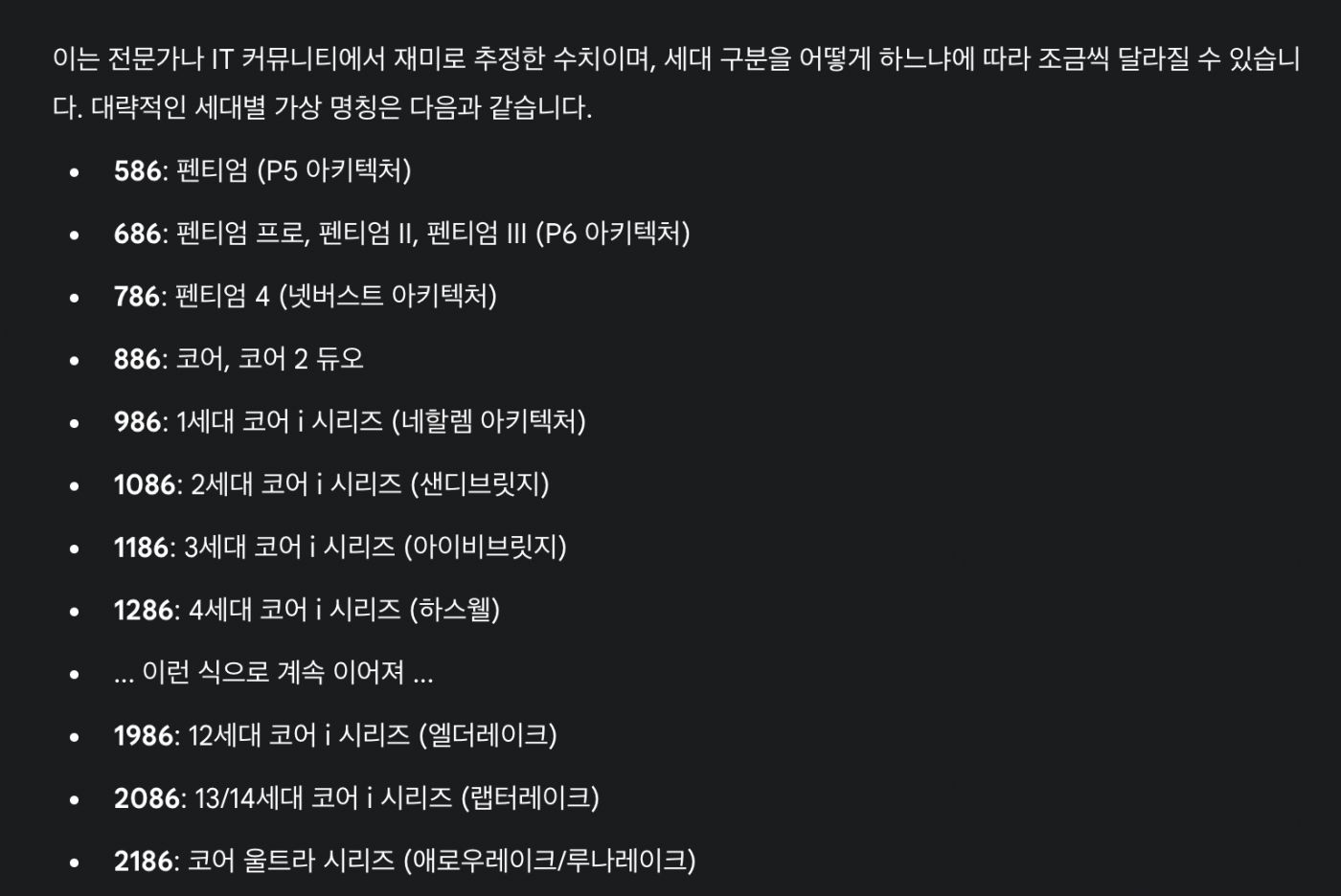 그런데, 인텔도 486 이후로는  마케팅에 586, 686같은 명칭은 안 쓰지 않았나요? :)