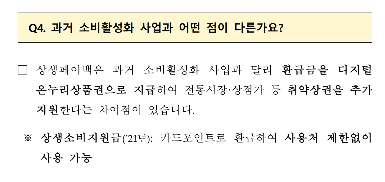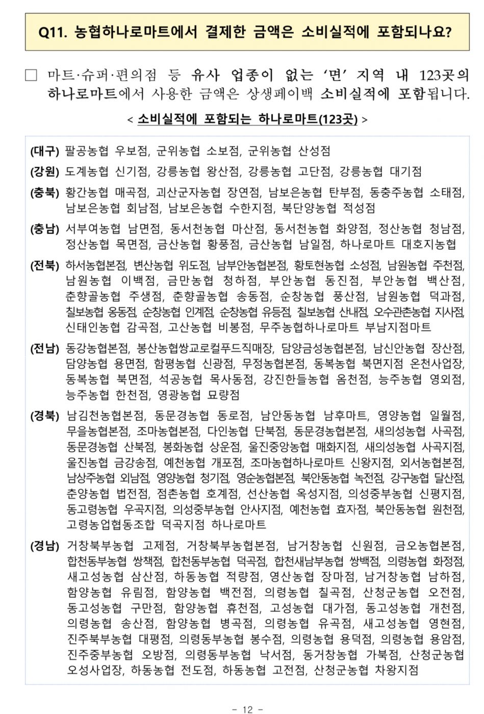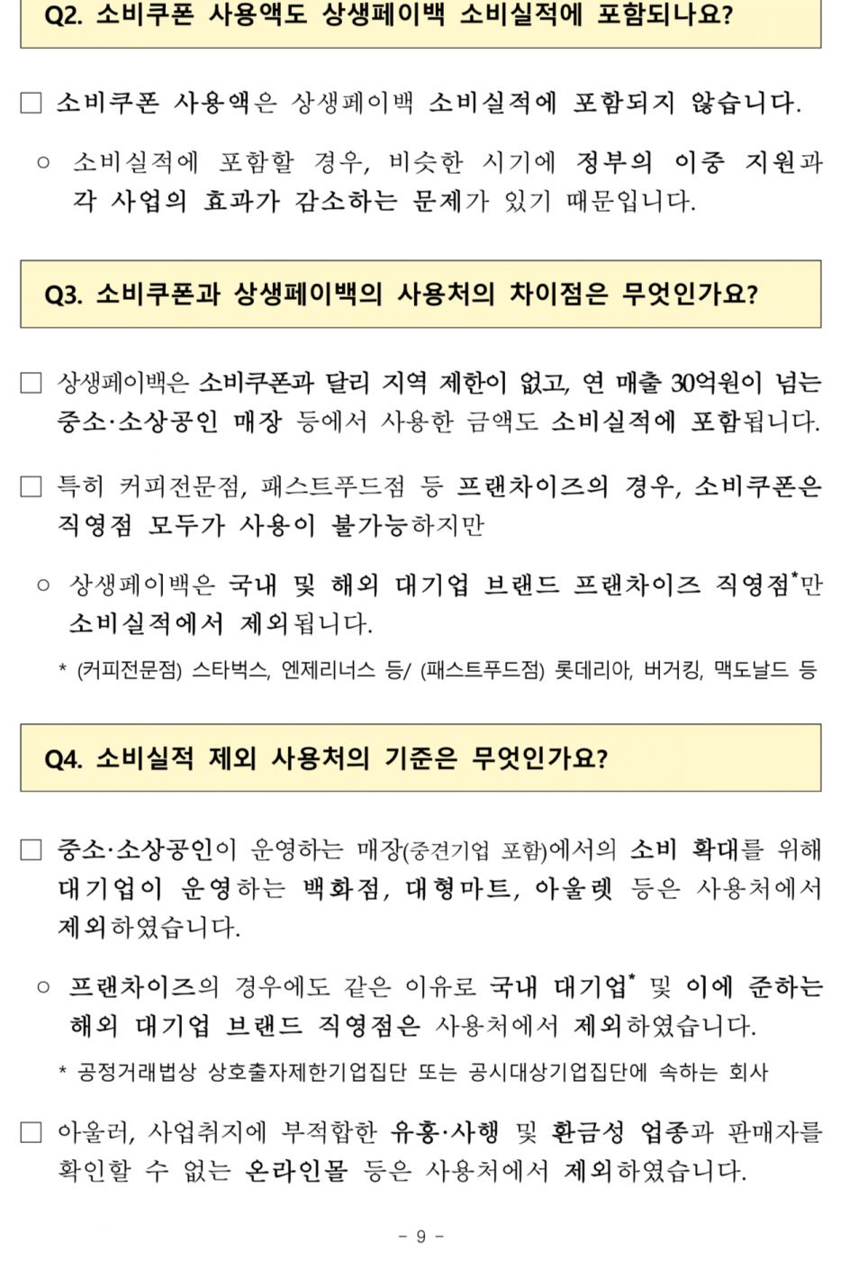 - 소비액 불인정 사용처 : 대형마트, 백화점, 유흥업소, 쇼핑몰/홈쇼핑 등 온라인 거래, 대기업 프랜차이즈 직영점 등