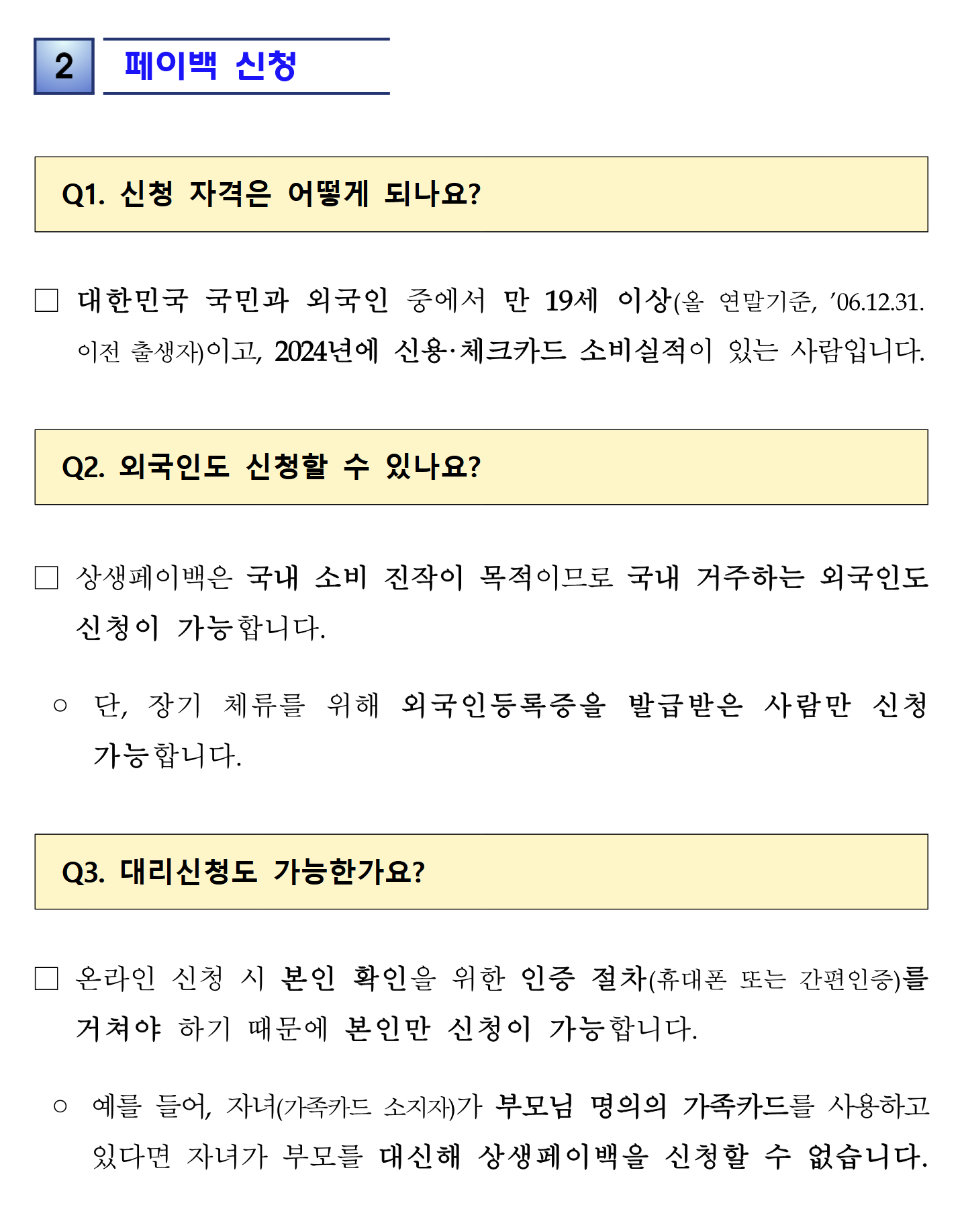 "상생페이백은 내수 진작 및 소비 활성화라는 취지에 맞추어 카드사용액 산정 시 일부 업종에서의 실적은 제외됩니다.