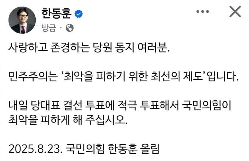정치차악 뽑아달란 한동훈…장동혁 “김문수 지지발언” 불쾌, 김문수 “전한길보다 한동훈 공천” 6 |