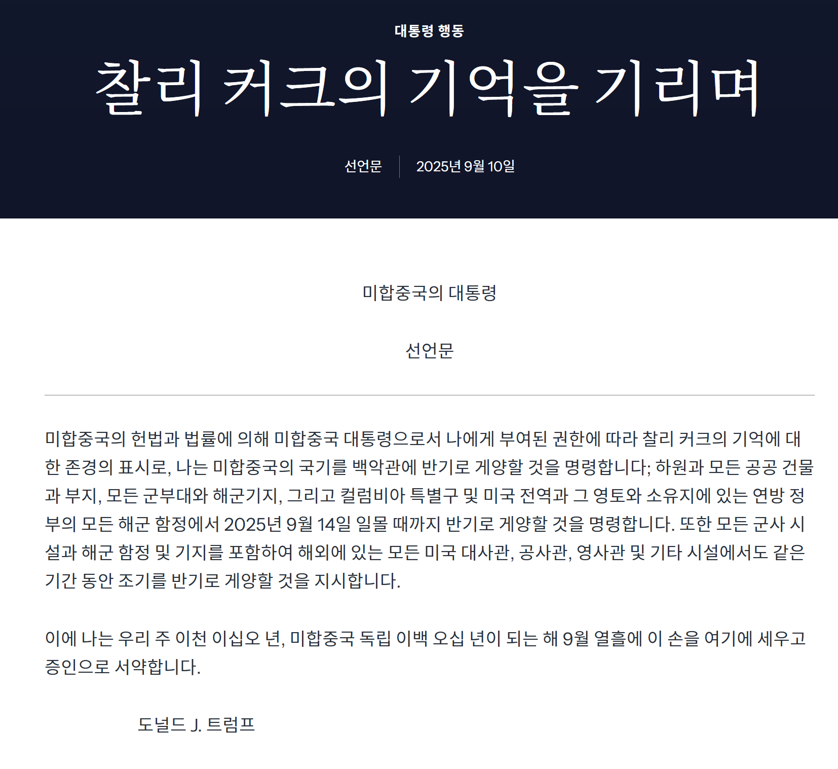 https://www.whitehouse.gov/presidential-actions/2025/09/honoring-the-memory-of-charlie-kirk/
