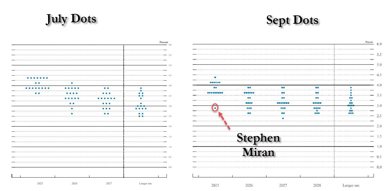 https://www.yna.co.kr/view/AKR20250918002854071 https://www.yna.co.kr/view/AKR20250916083200009 트럼프의 그림자가 FOMC에 점점 더 드리워지기 시작하는 것 같습니다. 그래도 다음 의장 후보군으로 꼽히는 크리스토퍼 월러는 50bps는 아니었군요. 아직은 고용시장 약화보다는 인플레이션 반등을 저어하는 위원들이 많은 것 같습니다. 0