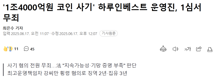 [헤럴드경제=안세연 기자] 투자자들을 속여 1조 4000억원 상당의 가상화폐(코인)를 가로챈 혐의를 받은 하루인베스트 대표를 법정에서 흉기로 찌른 50대 남성에게 징역 5년이 확정됐다. A씨는 정신감정 당시 “죽고 싶다는 생각이 들던 중 나 보단 사기꾼이 죽는 게 맞다는 생각했다”고 진술했다.