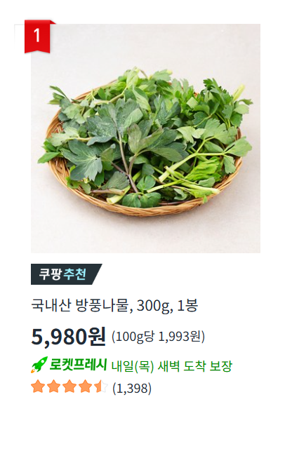 쿠팡에서 방풍나물 200g 3000원 짜리를 저들이 사냥하는 것을 보았기 때문입니다.