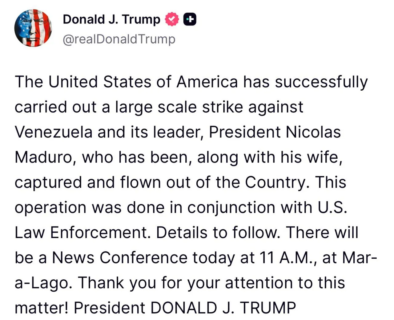 https://www.nytimes.com/2026/01/03/world/americas/venezuela-caracas-explosions.html 베네수엘라 수도에서 폭격이 확인되었고 현재 수도상공에 미군 수송용 헬기가 확인되었네요. 특수부대 투입후 암살이나 납치작전 등이 이루어지는걸로 추정 1