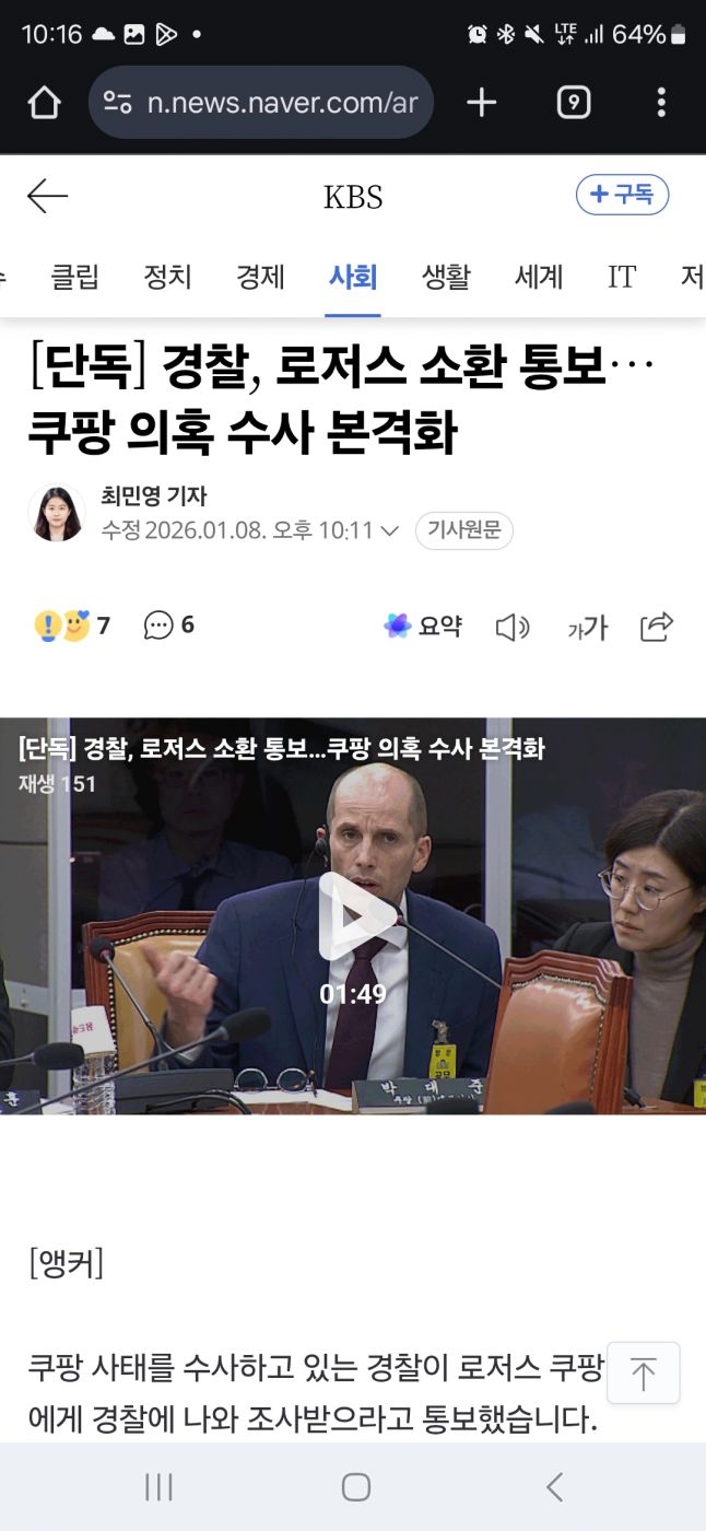 | Subject | 경찰, 로저스 소환 통보…쿠팡 의혹 수사 본격화 |