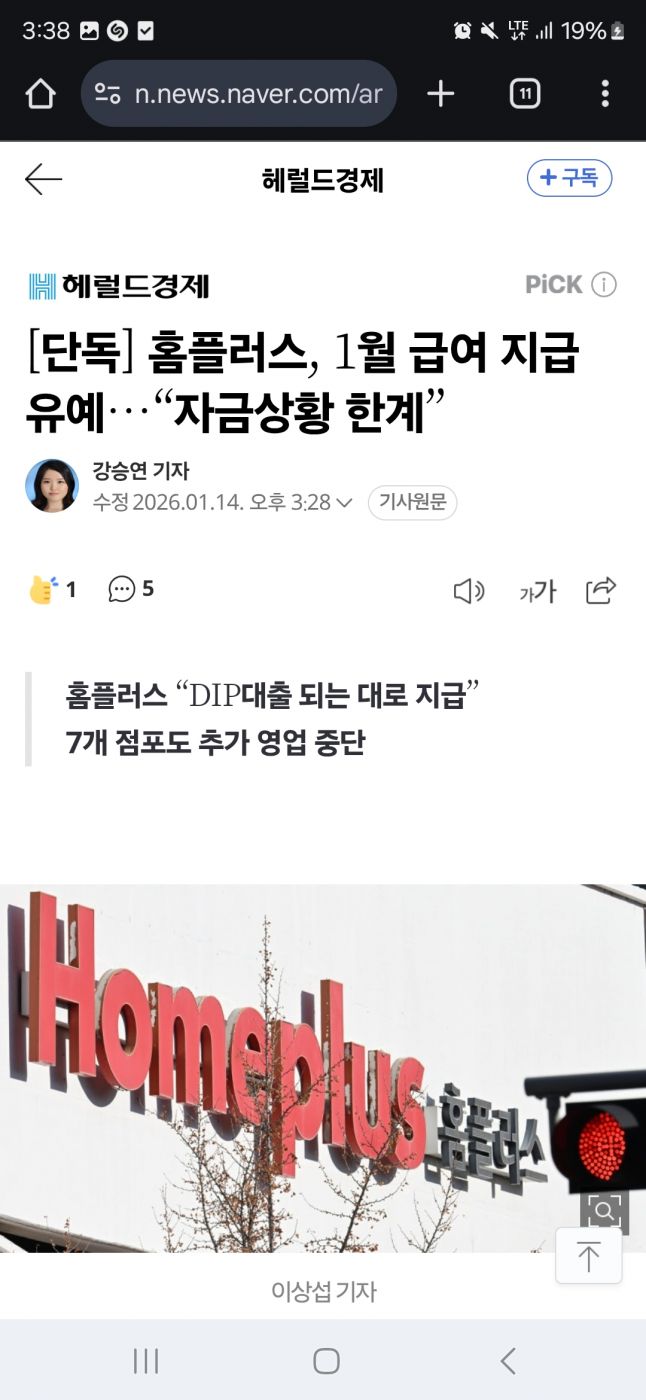 Subject   단독] 홈플러스, 1월 급여·상여금 지급 유예…“자금상황 한계