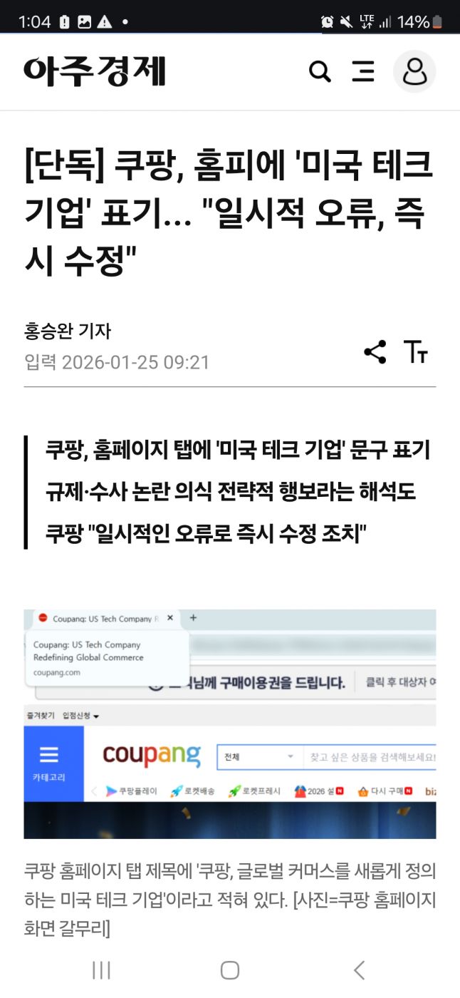 4441 경제쿠팡 미국 투자사 “이재명 친중”…한국을 베네수엘라 빗대기도 14 Picard 26/01/23 1370 0
