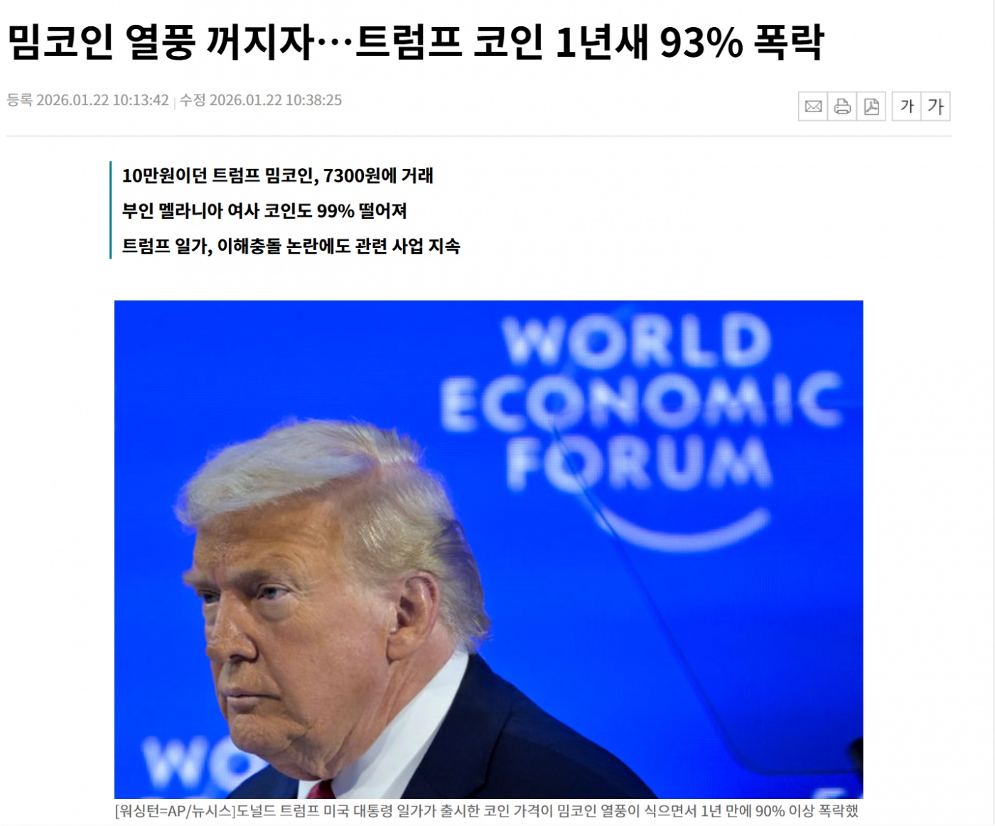 국제밈코인 열풍 꺼지자…트럼프 코인 1년새 93% 폭락 2 |