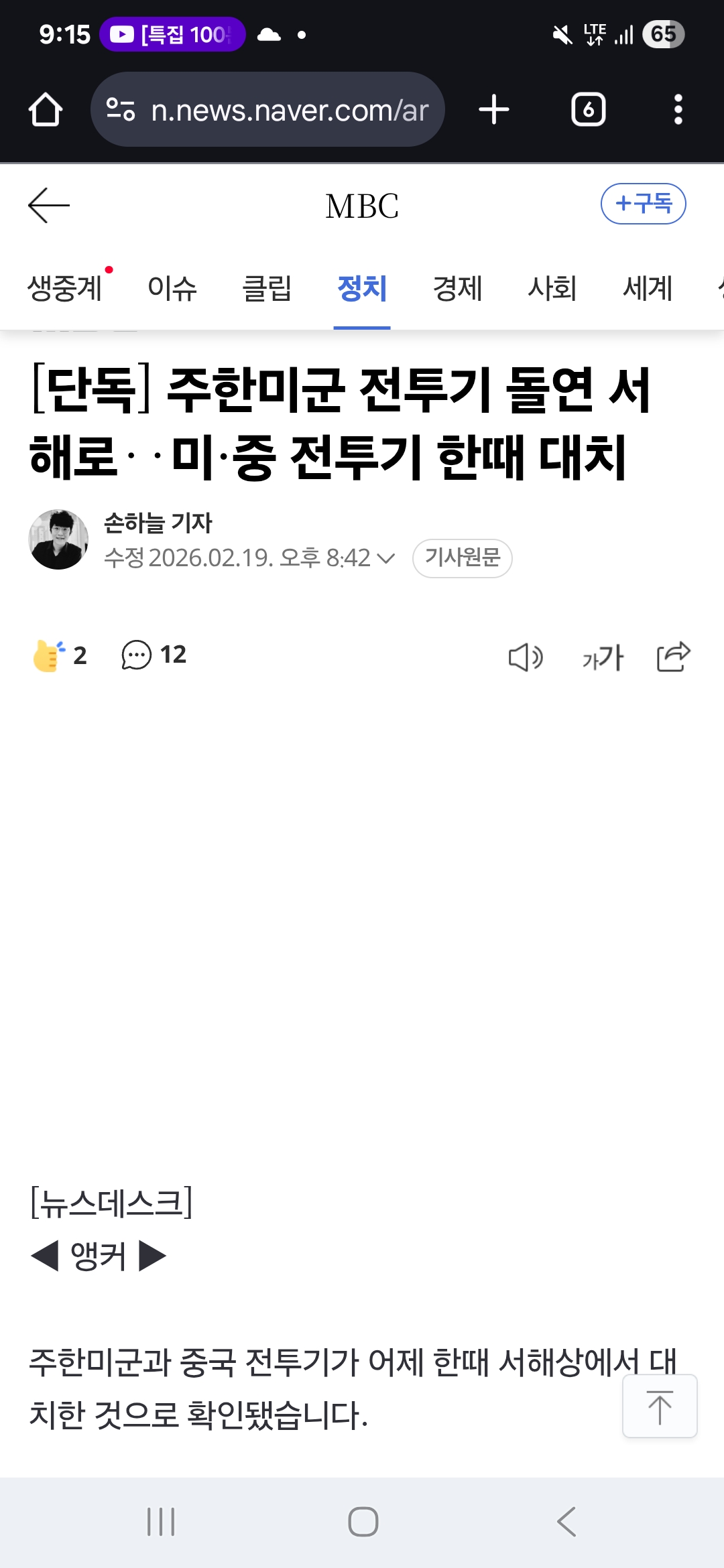 4668 정치단독] 주한미군 전투기 돌연 서해로‥미·중 전투기 한때 대치 1 + 활활태워라 26/02/19 199 0