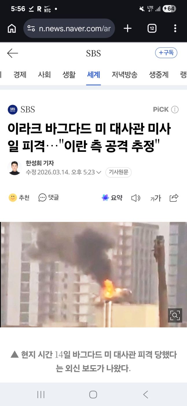 | Subject | 이라크 바그다드 미 대사관 미사일 피격…"이란 측 공격 추정" |