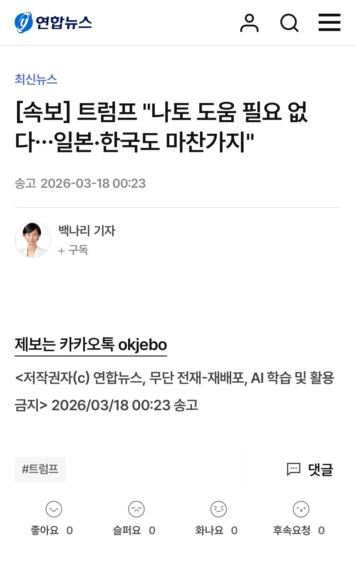 정치속보] 트럼프, 韓·中·日 거론하며 "호르무즈 해협 문제 도와주길" 3 |