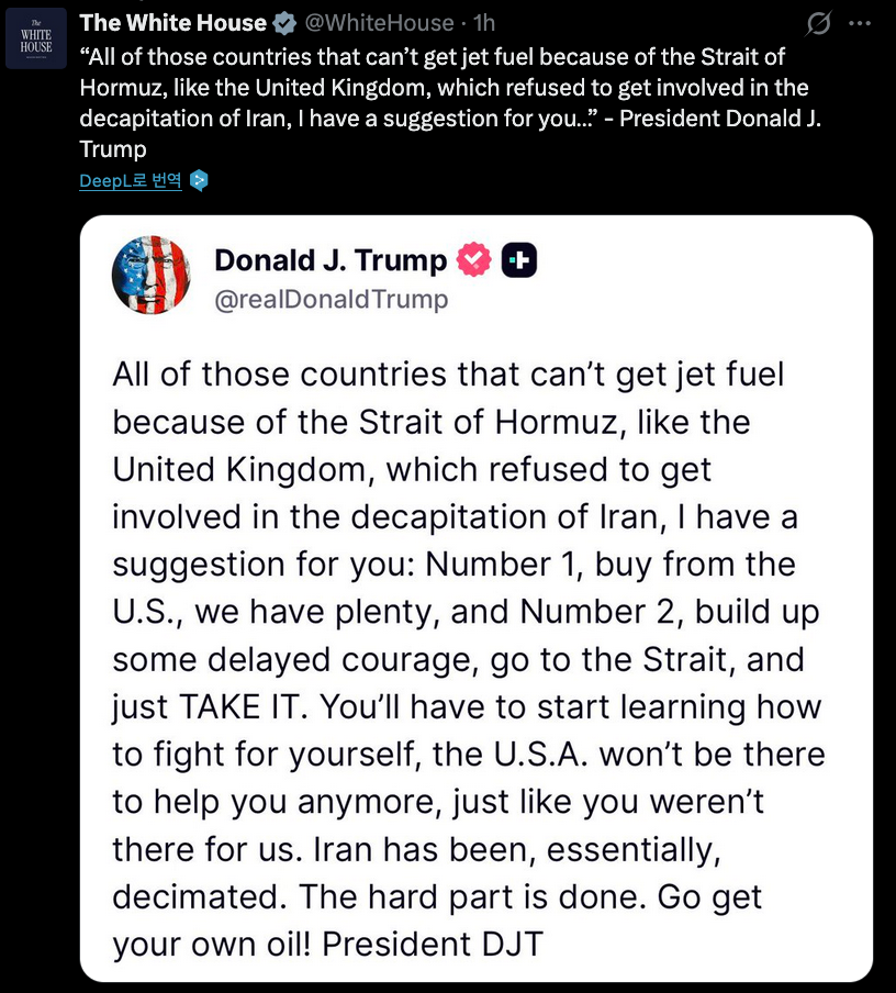 국제트럼프 "호르무즈서 석유 직접 확보하라"…英佛 맹비난 3 + |
