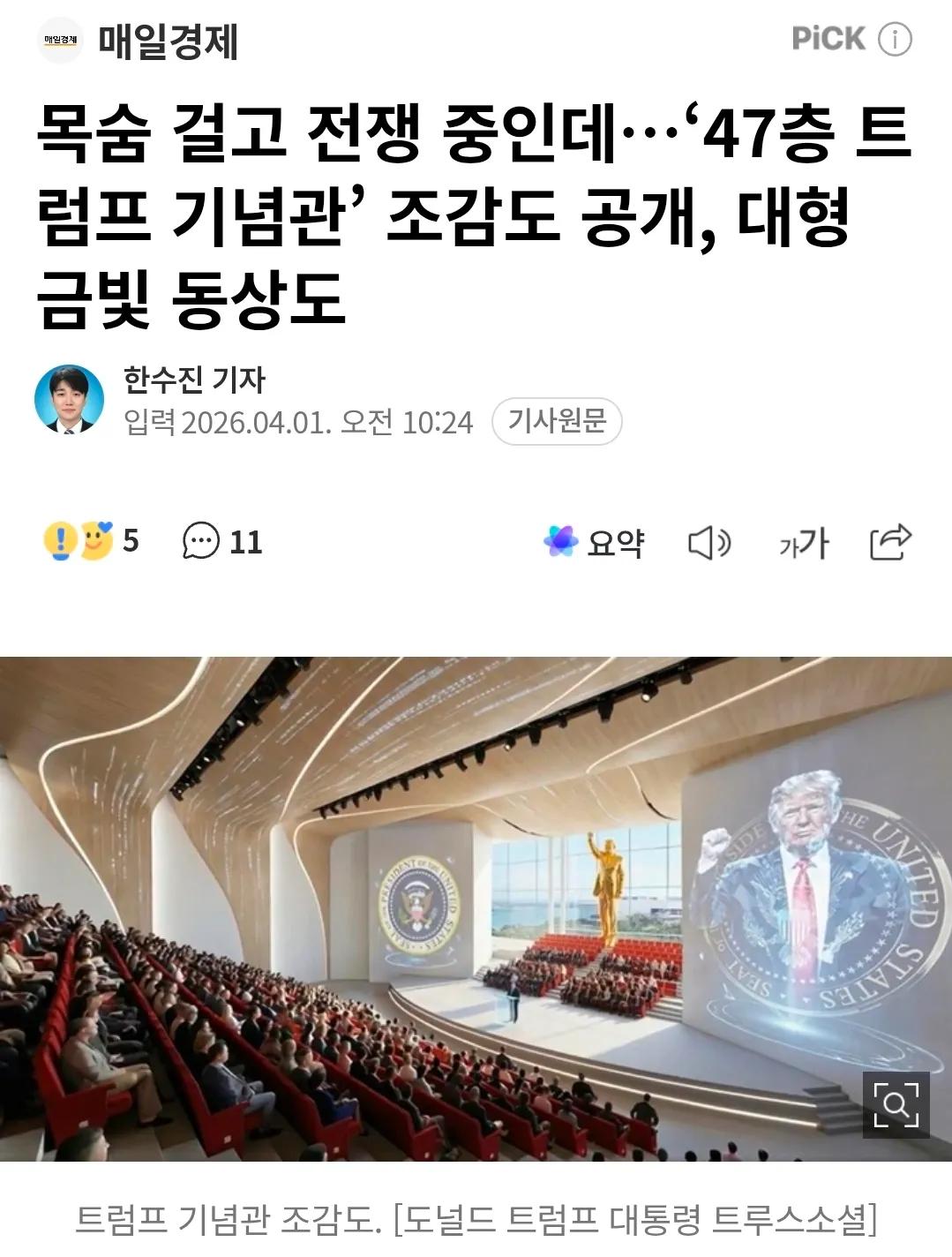 국제초호화 건물 금빛 동상 '떡'..'선 넘는' 셀프 우상화 6 + |