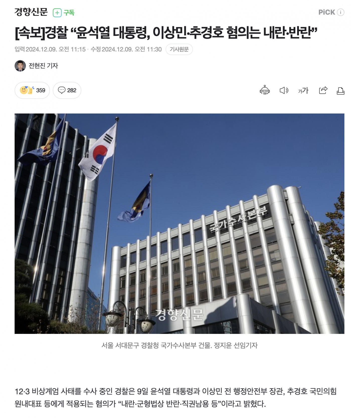 Subject   경찰 “윤석열 대통령, 이상민·추경호 혐의는 내란·반란”