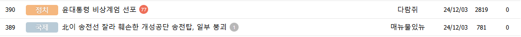 우연히도, 계엄 소식 바로 아래에, 북한 송전탑 붕괴 소식이 위치한 것일까요?