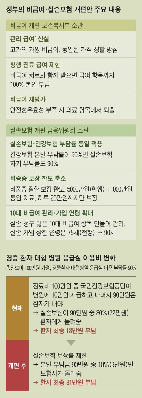 이와 함께 복지부는 실손 청구가 가장 많은 상위 ‘10대 비급여·비중증 항목 리스트’를 만들어 관리할 예정이다. 정부 내에선 “현재로선 도수 치료, 영양 주사, 일부 척추 시술, 비급여 MRI, 증식 치료, 체외 충격파 등이 포함될 가능성이 높다”는 얘기가 나온다.