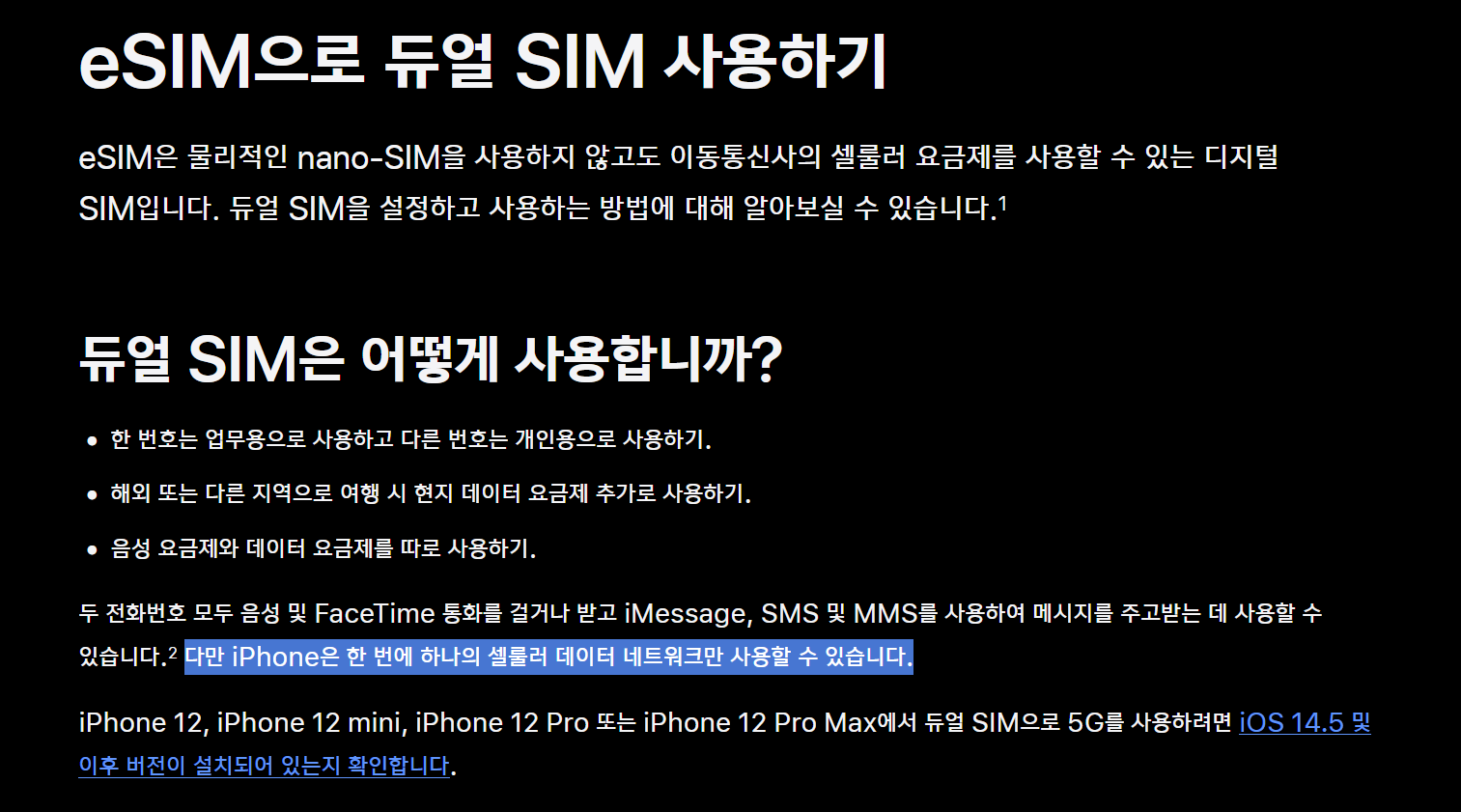 | Subject | eSIM과 물리심을 이용한 듀얼심 투넘버에 대한 궁금증 |