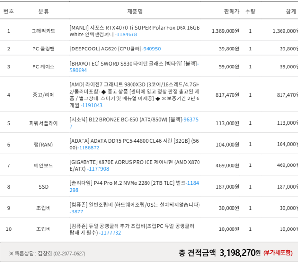 데스크톱 견적은 처음짜보는거라 모르는게 많네요. 일단 조립컴 판매사이트에서 견적짤때 제공하는 호환성 테스트는 마쳤는데.. 혹시 이렇게 이륙해도 괜찮을까요? 0