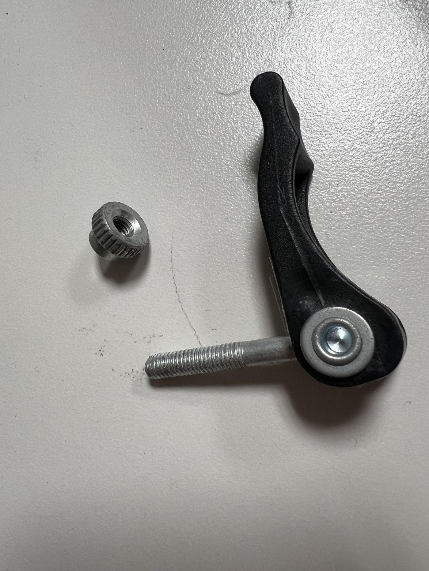다시 설치하려고 보니 양쪽에 하나씩 있는 고정철물 세트중 한쪽의 너트(왼쪽 작은 동그란거)가 없네요…