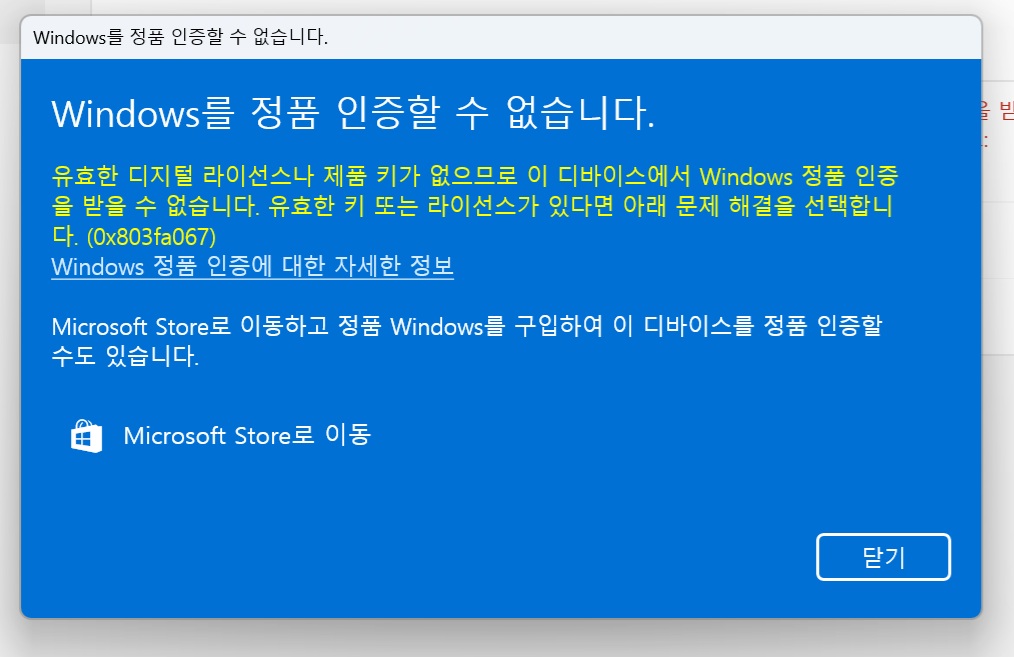 Subject   윈도우11 정품 인증 문제