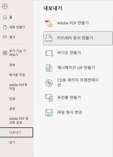 Subject   파워포인트 내보내기 메뉴 질문입니다