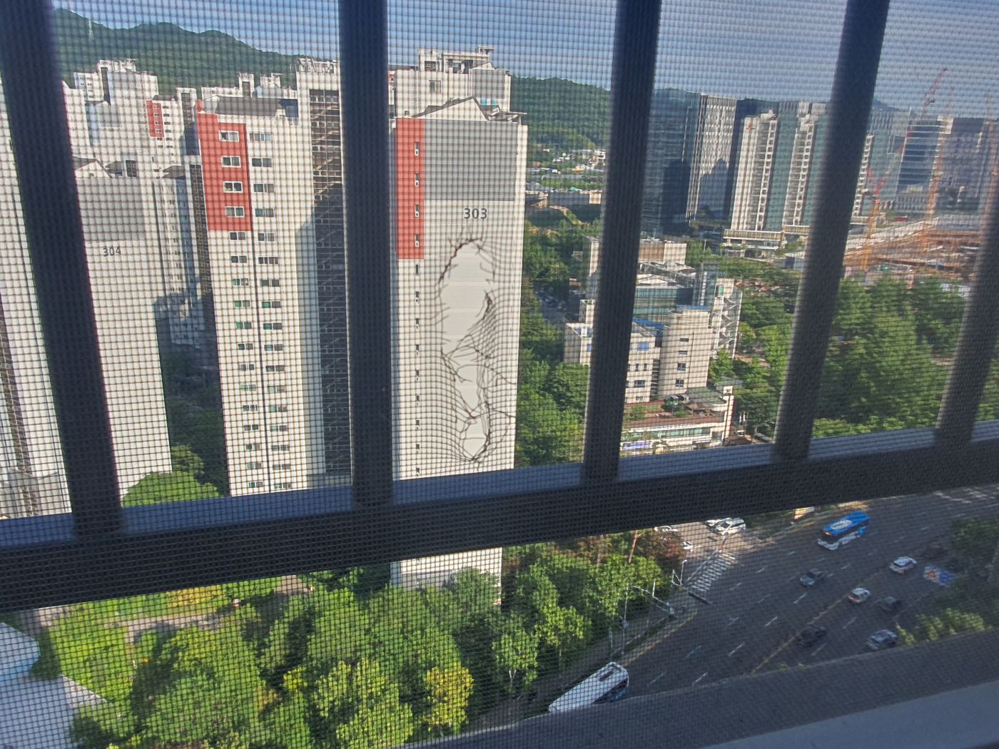 가족 중 어느 훌륭하신 분께서 집안에서 골프 스윙을 연습하다가 창틀과 방충망을 해드셨습니다.