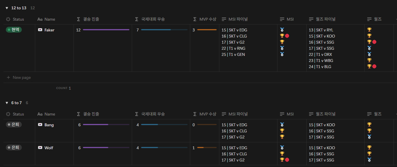 예를 들면 Faker는 24, Bang과 Wolf는 17이 나오도록 하면 됩니다. 도와주시면 감사하겠습니다!