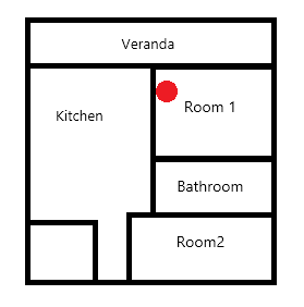 사진과 같은 구조에서 빨간 점이 에어컨 위치입니다.