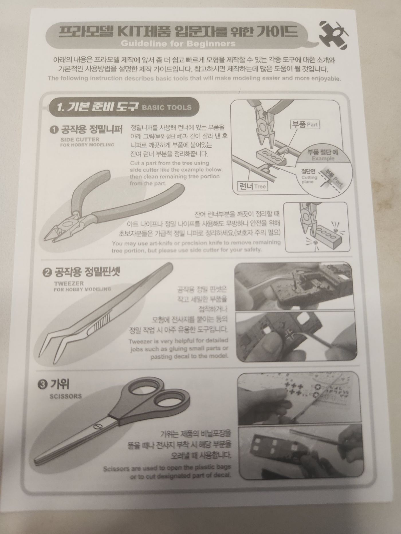프라모델이 생겼는데 불행하게도 제가 만들어야 합니다. 공작용 정밀니퍼, 정밀핀셋, 접착제 추천 받습니다. 그리고 신문지 깔고 하면 되나요? 만들 때 팁도 부탁드려요. (참고로 예전에 맨손으로 접착제 만지다가 손가락 피부에 후유증이 남아 있어서 트라우마가 있습니다 가격이 싼거보다는 안전성 편의성 위주로 추천 부탁드려요) 0