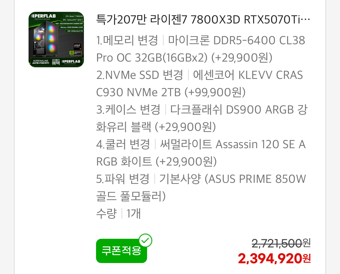 16999 IT/컴퓨터완본체 게이밍 조립피씨 구매 고민중입니다 6 전투용밀감 25/09/16 1172 0