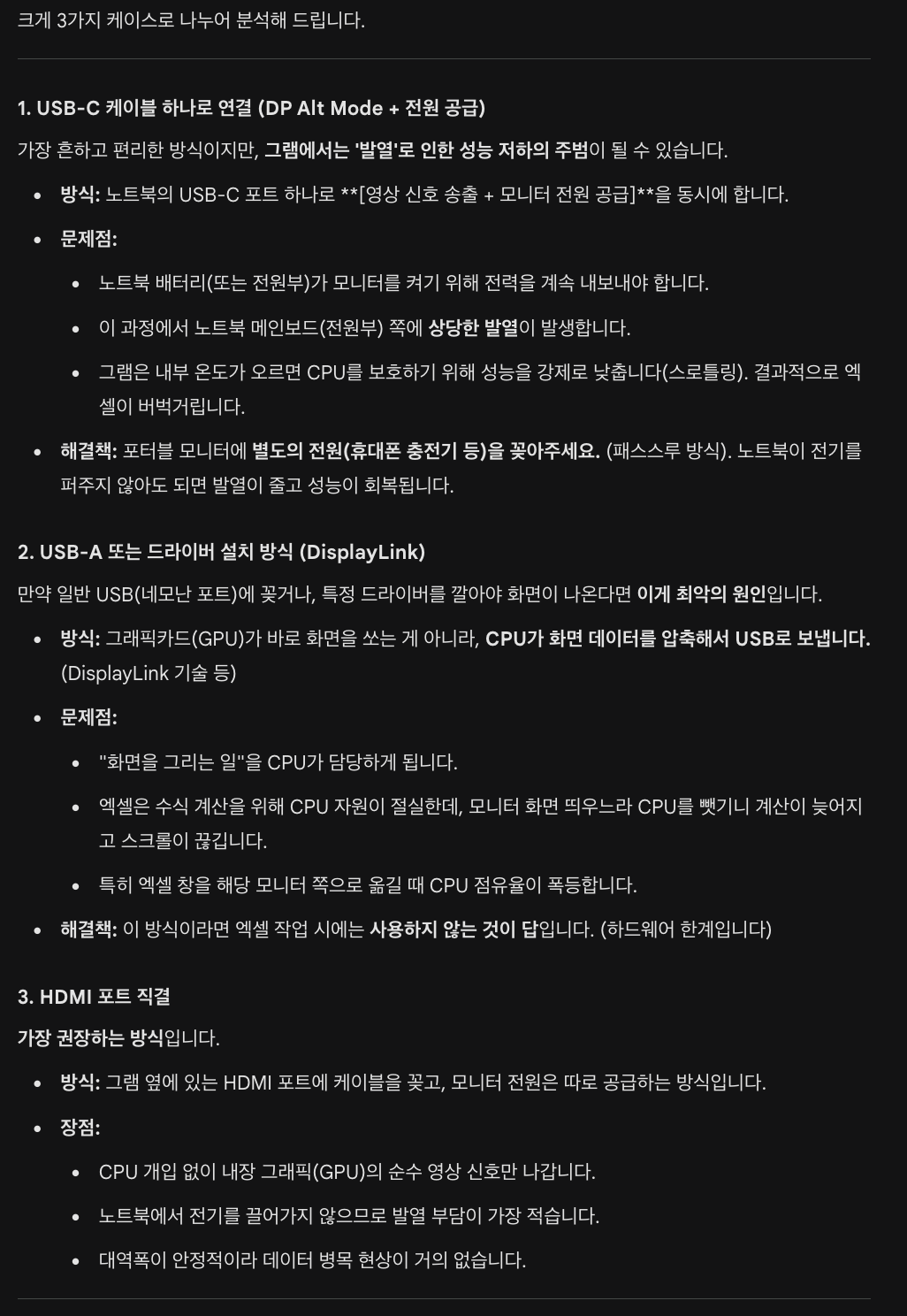 그리고 제가 평소에 노트북을 32인치 모니터 + 포터블 모니터에 물어서 사용중인데, 느려지는게 확연하게 느껴집니다...
