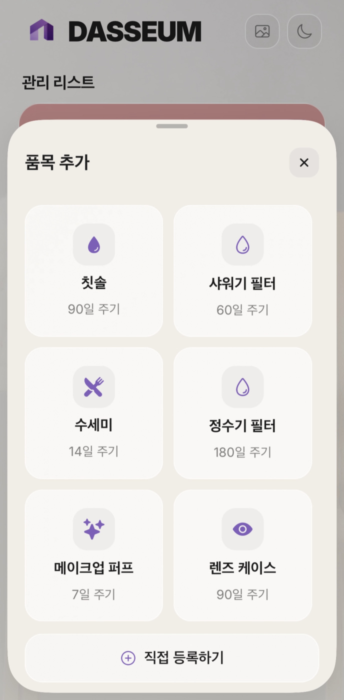 그때 생각보다 많은 분들이 솔직하게 의견 주시고, 주기 관리가 필요한 물품도 많이 추천해주셔서 앱 만드는데 정말 큰 도움이 되었어요.