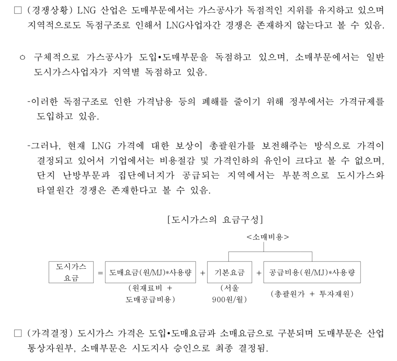 우리나라의 경우 제주도(LPG+Air 방식) 제외한 모든 지역 도시가스가 LNG를 다시 기화시켜 공급하고 있습니다. 지난 7월 1일에 도시가스 요금이 평균 13.1% 인하된 바 있죠.
