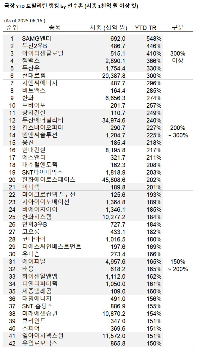 코스피 지금까지 YTD 개같이 폭등한 종목이 이렇게 많았구나 싶네요. 국장리턴은 지능순 ㅠㅠ 9