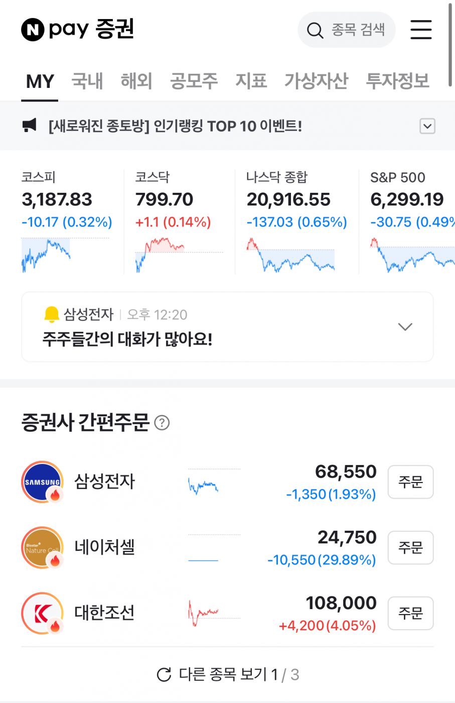 요 며칠 네이버 주식 추천 종목으로 뜨던 놈인데