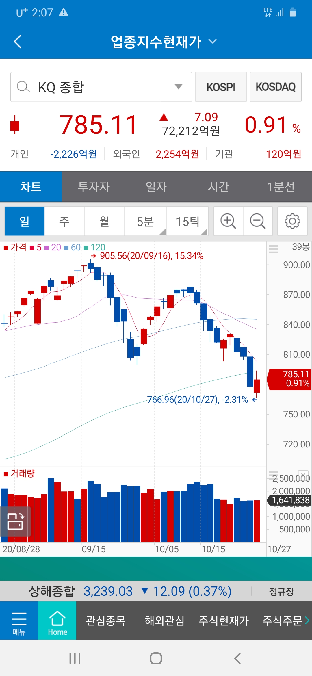 어제 나스닥을 판 것은 오늘 코스닥을 사기 위한 [추진력 적립]이었음을.