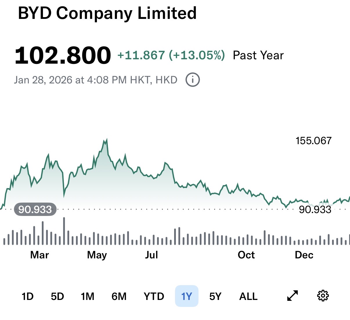 | Subject | 그거 아십니까? BYD 가 작년 11월 이후 처음으로100 HKD 를 뚫었읍니다 ㅎㅎㅎ ( |