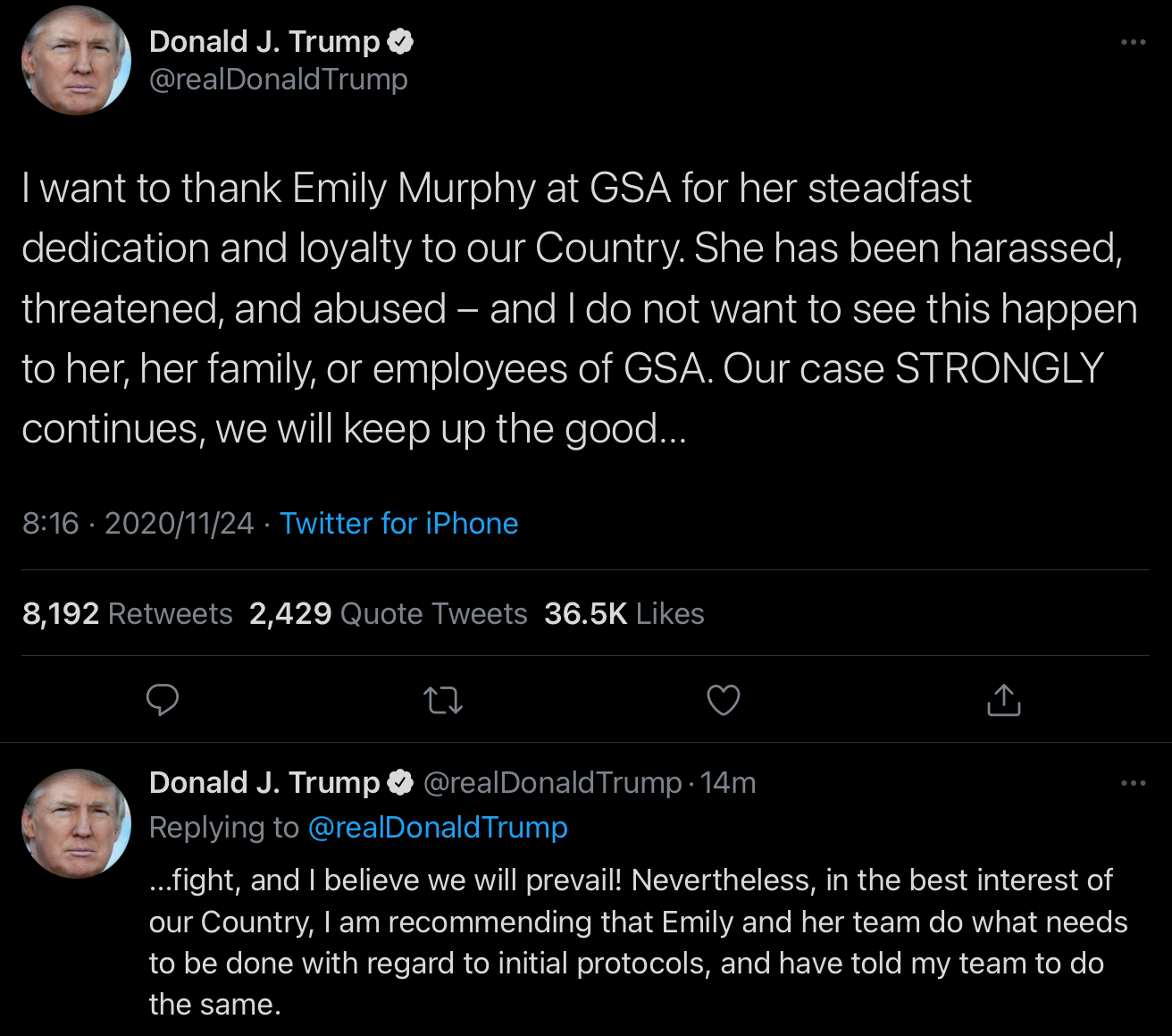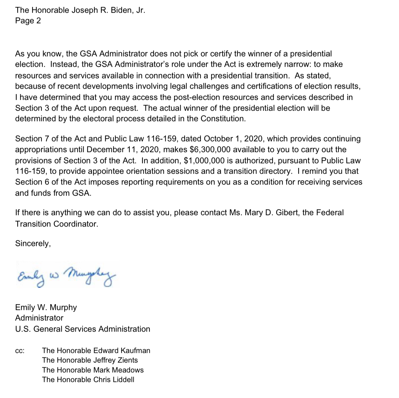 Subject   미 연방총무청, 바이든 정권인수 개시 통보…대선승리 인정
