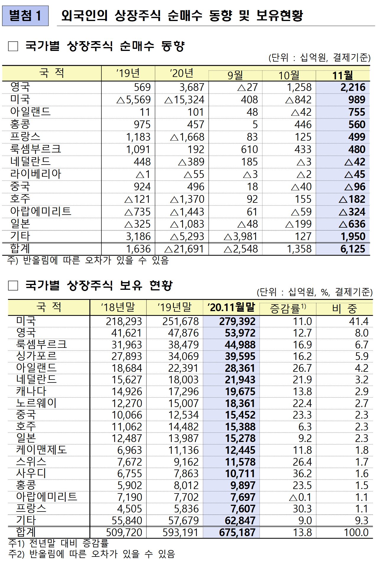 | Subject | 11월 외국인 국내주식 6조 순매수…보유액 675조 '사상 최대' |