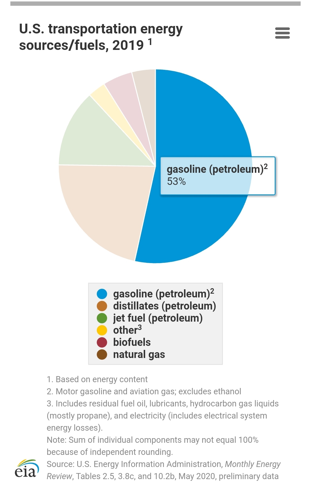 2. 운송섹터에서 53% 가솔린에 사용되고 distillate(트럭 버스 기차 선박 등에 사용) 와 항공유는 합쳐서 35%를 차지합니다.