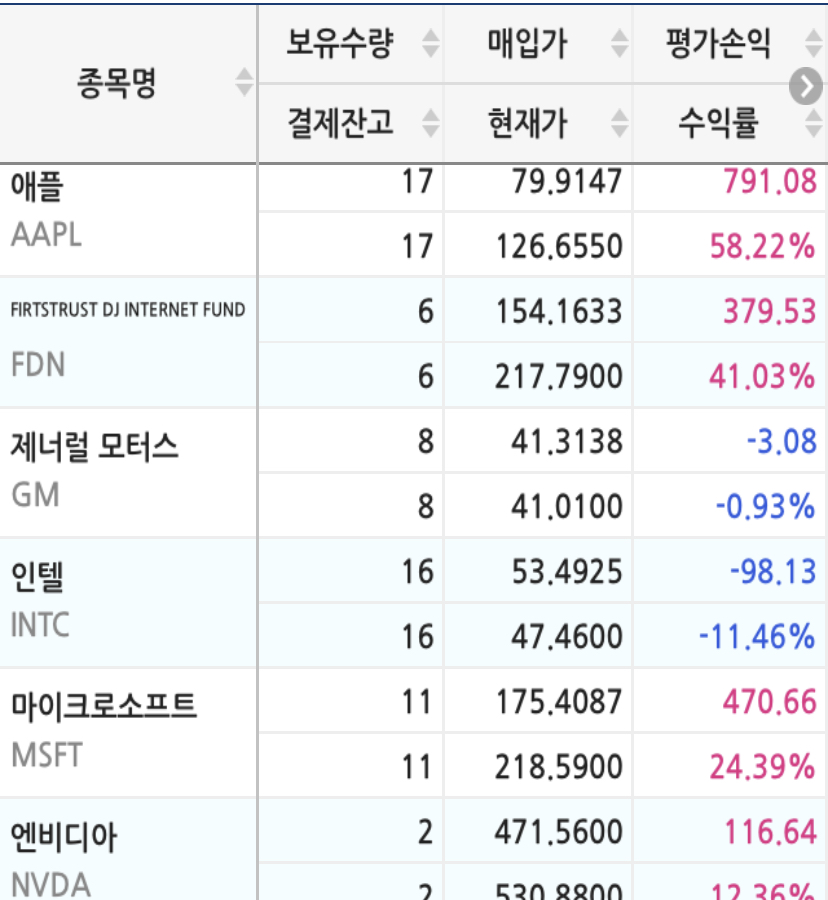 심지어 매수시점을 감안하긴 해야겠지만, 애플을 제외하면 FDN ETF의 수익율을 능가하는 종목이 없습니다. 제 투자실력을 감안할때 진짜로 깔짝깔짝 분산투자 할 바에야 전부 다 매도해버리고 FDN ETF에 몰빵하는게 수익율이 더 나았을것도 같네요. 흠.. 지수투자를 진지하게 한번 고려해봐야겠습니다. 1