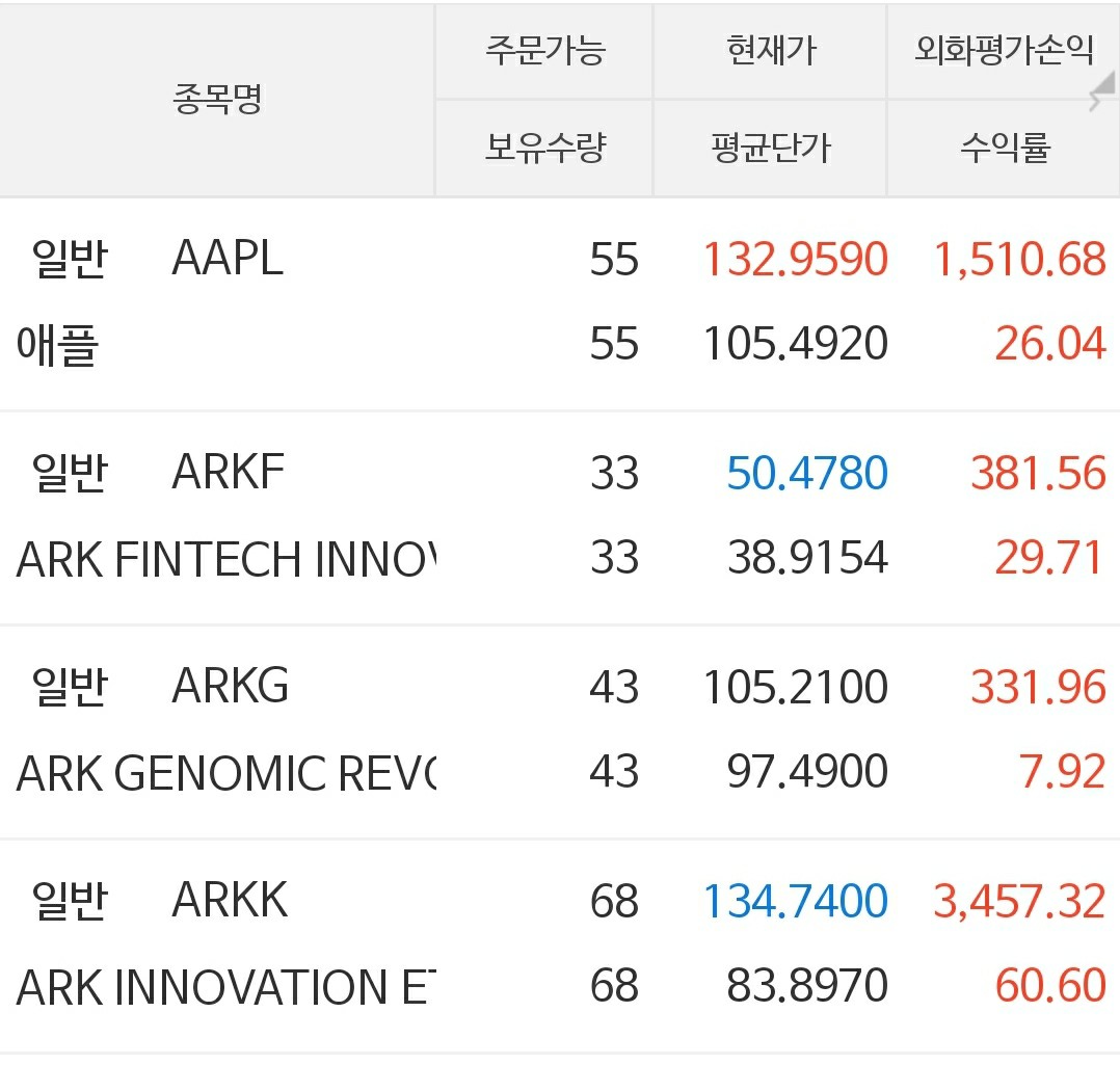 최소 결혼(3~4년) 후를 목표로 넣기때문에 ARK시리즈만 매수하려고 합니다. 매도는 생각도 안하려구요(물론 캐시우드 오너십 상황에 따라 변동예정). 그리고 업무 직무가 졸라바쁜 보직으로 이동예정이라 ETF만 사려고합니다.