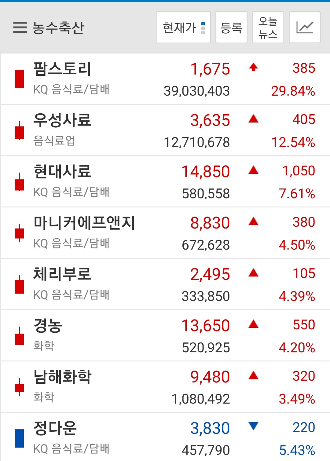 오늘 팜스토리 우성사료 체리부로 이런 친구들이 오르길래 개꾸르~하고 가보니 없네요...? 생각해보니 2주쯤전에 노잼이라고 그냥 정리했더군요...2주전의 나란놈은 도대체... 바이오고 전기차고 핫한것도 좋지만 때로는 경기 타는 주들도 포트에 묵직하게 잡고있어야 함을 반성해봅니다. 그나마 있는 경농 너라도 힘을 내줘! 1