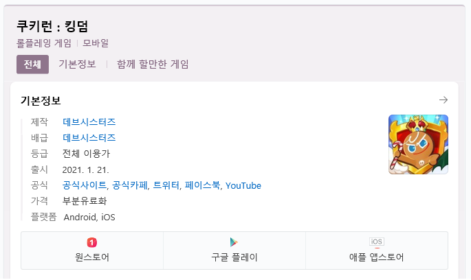 1월 21일 쿠키런:킹덤 이라는 게임이 출시됐는데
