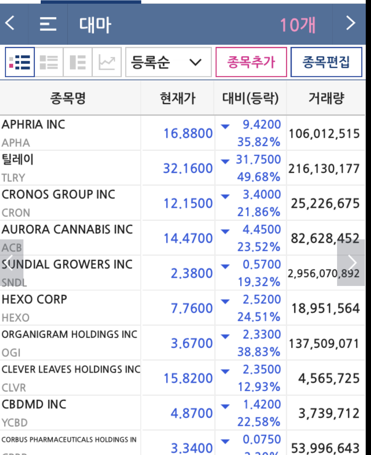 2시간 전엔 전부 +10% 이상 찍었는데 0