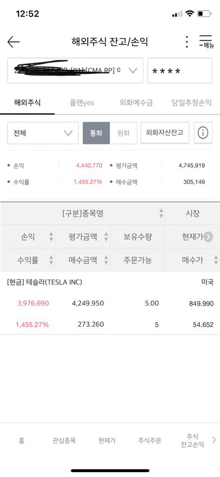 는 저희 누나(광고회사 재직중) 얘기 인데요... 증권회사 해외주식 어플 관련 피티 때문에 테슬라 한 주 사놓은 걸 얼마 전에 캡쳐해봤다고 하네요 ㅋㅋㅋ;;; 돈 복사기 원조 테설라 ㅠㅠ 2