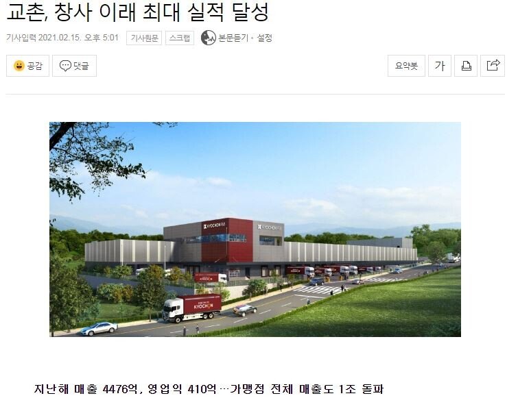 Subject   우오오오!!! 교촌 창사이래 최고 실적 달성!!!