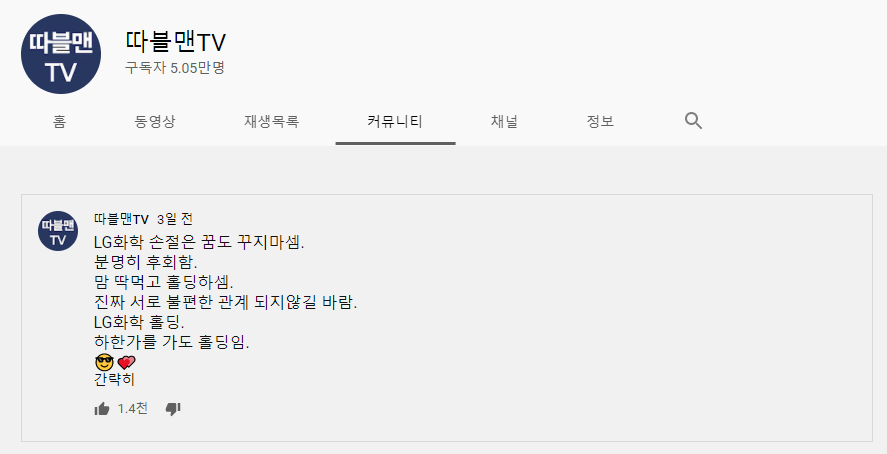9월 22일 테슬라 배터리데이 10월 5일 LG화학 vs SK 이노베이션 판결 테설라 배터리데이야 다들 알고 계실 테니 더 말할 필요가 없습니다. 저한테 더 관심있는 쪽은 10월 5일...ㅋㅋㅋㅋ LG가 이길 가능성이 높은 가운데 SK가 이기는 각이 아예 없는 건 아니라고합니다 (자세히 모름) 저야 뭐 LG화학에 정찰병 심어둔 입장이니까 LG가 이기면 좋은데 다른 분들은 어떻게 생각하시는지 궁금합니다. 0
